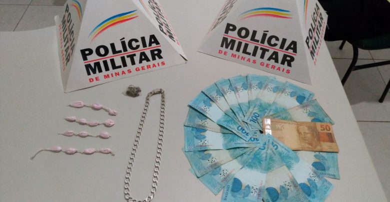 Os militares realizaram levantamentos e encontraram o autor. Com ele e na casa em que reside foram apreendidos quatorze papelotes de cocaína, um tablete de maconha, R$ 1.650,00 em dinheiro, um aparelho celular e um cordão de prata.
