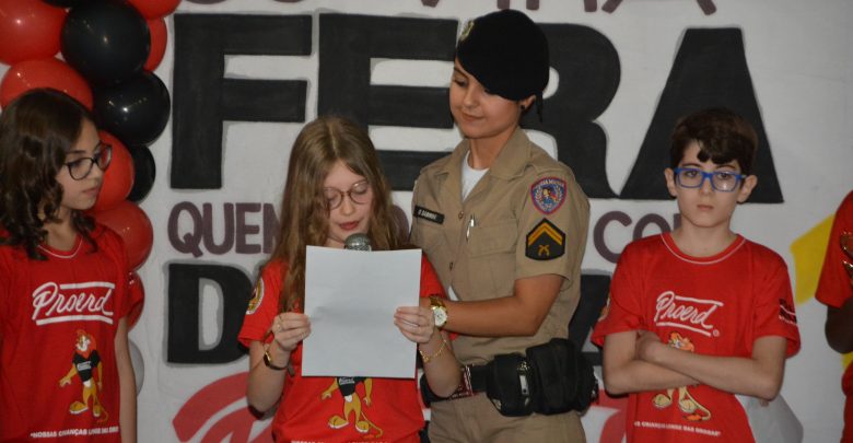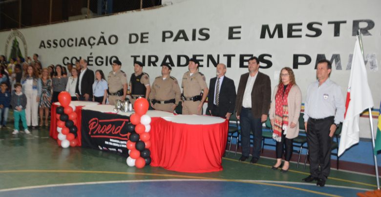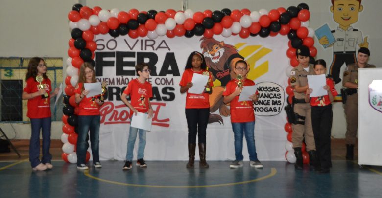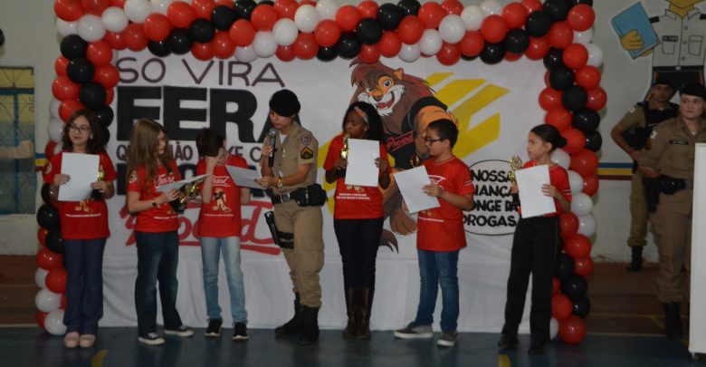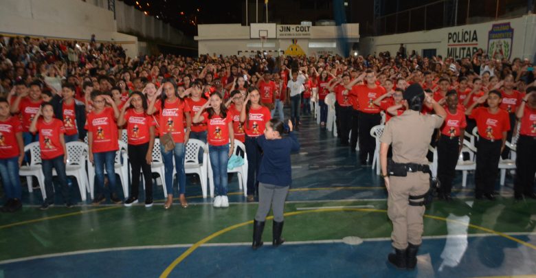 Em MANHUAÇU a solenidade de formatura aconteceu no Colégio Tiradentes, na noite de 27/06 e foi marcada pela presença da família, que orgulhosos, foram assistir ao compromisso de suas crianças a se manterem longe das drogas e da violência. As escolas participantes neste primeiro semestre foram: Colégio Tiradentes, E.E. Cordovil Pinto Coelho, E.E. Salime Nacif, Colégio Anglo, CEM e Escola do Futuro; totalizando 367 crianças do 5º ano do ensino fundamental atendidas pelo programa. E em Realeza, no dia 02/07, terça-feira, ocorrerá a formatura de mais 30 alunos.