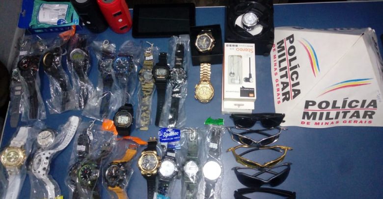 Os militares se deslocaram ao local do furto, uma barraca de camelô no terminal rodoviário, sendo constatado o arrombamento. Em diligências posteriores, foi encontrado o restante dos materiais furtados, sendo 22 relógios de pulso, três caixas de som, dois carregadores de celulares, três fones de ouvido, cinco óculos de sol e um tablet.