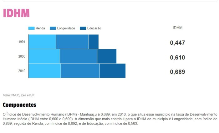 Rafael Moreira explica que o IDH do município é comparado com os índices do Brasil e de Minas Gerais, para que se obtenha um parâmetro de como Manhuaçu se encontra diante aos quesitos nacionais e estaduais. “Verificamos que em todos os componentes de Índice de Desenvolvimento Humano, seja o IDH renda ou longevidade, que está atrelado a questão da saúde, expectativa de vida, qualidade de vida da população e também da educação, observamos um crescimento em todo esse índice.
