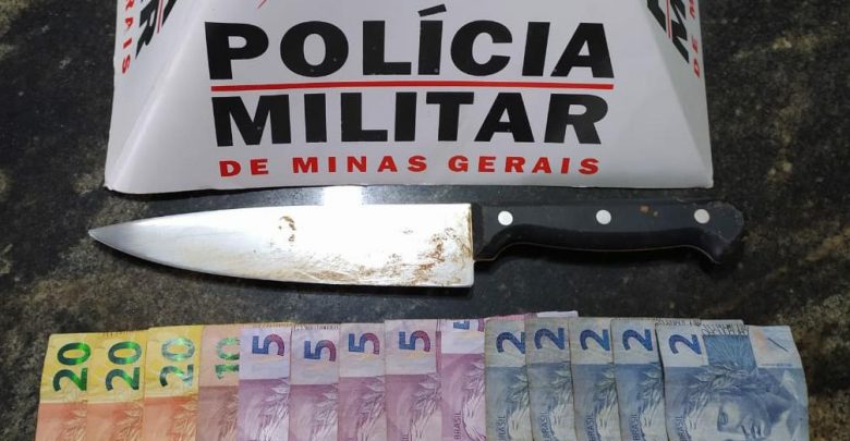 O segundo autor também foi localizado e preso em um prédio abandonado na Travessa Ana Fraga e informou onde estava escondido o valor roubado, sendo localizada a quantia de R$105,00 e uma faca.