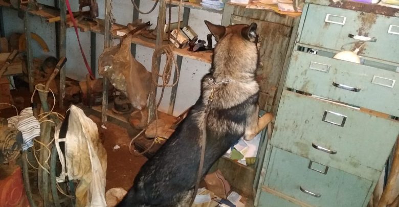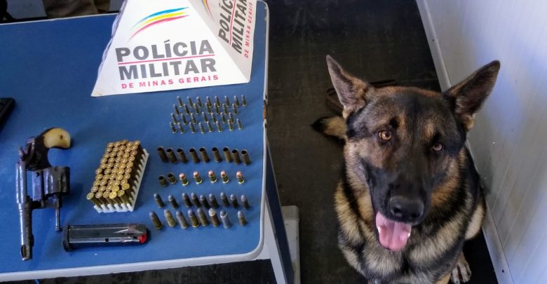 Durante as buscas, o cão Aquiles apresentou comportamento tecnicamente descrito como alerta específico, indicando a existência de material ilícito dentro de um cofre. Foram apreendidos: 01 revólver calibre .38, 01 carregador PT .380, 57 munições calibre .38, 30 munições calibre.22, 10 munições calibre .32 e 05 munições calibre.380.