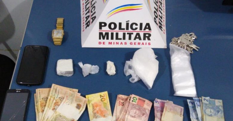 As equipes deslocaram até o local e durante as buscas foram localizados 03 tabletes de maconha, 01 porção de cocaína, R$ 432,00, 01 cordão, 01 relógio e material para embalar drogas.