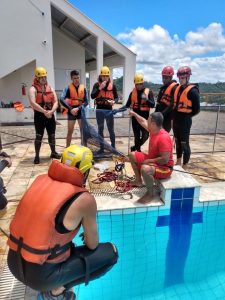 Na manhã de hoje, bombeiros militares da 2ª Companhia de Manhuaçu, realizaram treinamento de salvamento aquático, visando melhor preparo para situações onde envolvam o resgate de vítimas em ocorrências de enchentes e enxurradas em águas com correntezas. O treinamento foi realizado pelo 2º Tenente Garcia e 2º Sargento Dias, que já haviam recebido este treinamento anteriormente na cidade de Governador Valadares por militares especializados do BEMAD (Batalhão de Emergências Ambientais e Resposta a Desastres). O conhecimento está sendo sempre difundido para o melhor preparo dos militares e atendimento mais eficiente para a população em situações de fortes chuvas e enchentes.