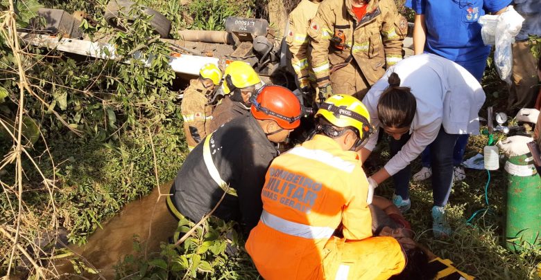 O Corpo de Bombeiros de Manhuaçu conseguiu resgatar a passageira com vida.