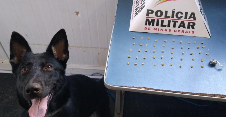 Durante as buscas foi aplicada a cadela farejadora Kacau, sendo localizadas 48 pedras de crack e 01 bucha de maconha.