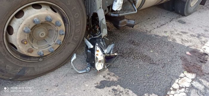 Uma carreta destruiu uma motocicleta na BR-262, entre Reduto e Martins Soares, na manhã desta quarta-feira, 23/06. Com o impacto da batida, o motociclista foi jogado para fora da pista. A carreta passou por cima da moto Suzuki Burgman, que ficou completamente destruída. Segundo informações, apesar da gravidade do acidente, o motociclista sofreu escoriações na mão e fraturou a perna. Ele foi encaminhado para o serviço de saúde.