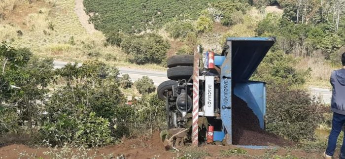 O grave acidente aconteceu na manhã deste sábado (03). Segundo informações do Resgate União o acidente aconteceu na localidade conhecida como Alto Boa Vista, próximo a Serra do Peão. Os socorristas informaram que o caminhão carregado de café desceu a ribanceira e tombou.