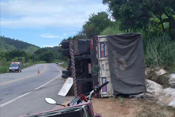 Um vídeo gravado por um motorista e enviado à reportagem do Polícia 24h, mostra o momento exato que uma carreta Scania tombou em uma curva na BR-116, próximo à Inhapim. Segundo informações, a carreta seguia sentido Caratinga e transportava sacos de sal.