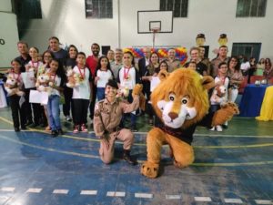A instrutora do PROERD, Cabo Sabrina, foi a responsável por transmitir a mais de 400 crianças as lições proerdianas e a assumirem o compromisso de se manterem longe das drogas e da violência.