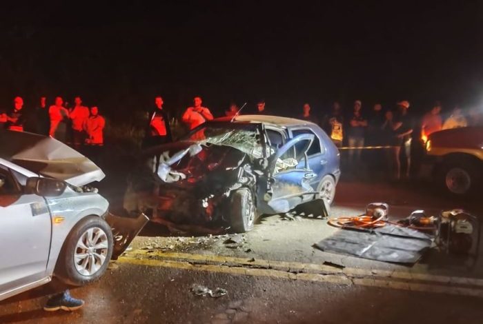 Um acidente envolvendo três veículos foi registrado no começo da noite de ontem na rodovia BR 262, no Kilômetro 58 no Distrito de Santo Amaro de Minas. Um dos veículos um Onix sedan seguia no sentido Realeza e outro veículo um Pálio sentido Santa Margarida, sofreram uma colisão frontal, que atingiu também uma Saveiro parada no acostamento.