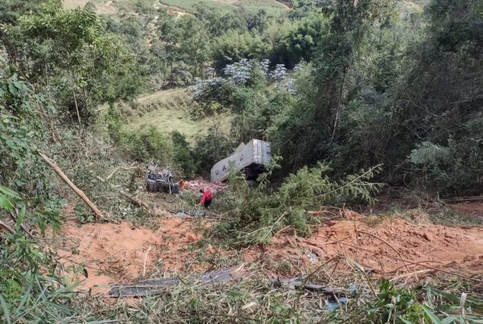A cabine ficou completamente destruída e o baú com a carga tombado na ribanceira, com as caixas parcialmente espalhadas no local. O motorista da carrega foi identificado como Tiago Botine, de 37 anos, até o meio da tarde desta sexta-feira, ainda não havia sido localizado no local do acidente.