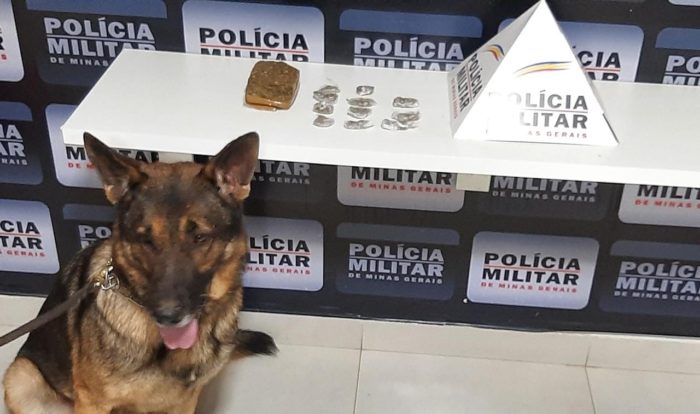 No local foi feito contato com a mãe do menor e durante as buscas com apoio da equipe ROCCA e do cão de faro Aquiles foram encontradas 01 barra e 12 tabletes de maconha, sendo que a barra se encontrava enterrada sob uma escada.