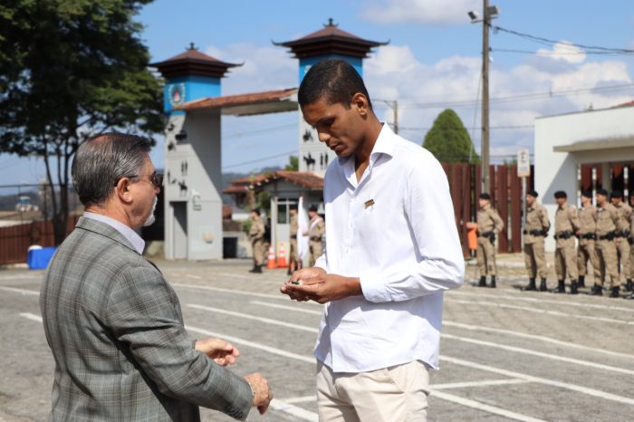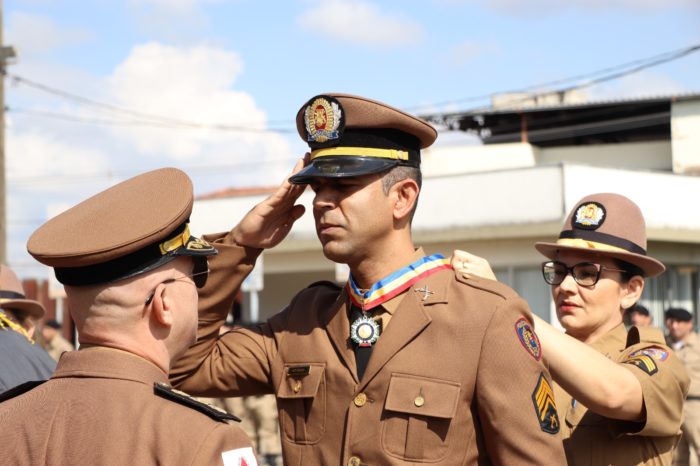 A Polícia Militar tem o hábito de reconhecer o trabalho de seus militares, inclusive, daqueles que já estão na reforma. Foi entregue hoje, a medalha dever cumprido, que é destinada aos militares que prestaram 30 anos de serviço ativo, e que tenham completado 30 anos na inatividade. O homenageado foi o 3º Sargento veterano, Antônio de Paula Silva, que faleceu no dia 30 de maio desse ano. O filho dele, o senhor Keyzer Antônio de Paula Silva, recebeu a medalha em nome do pai.