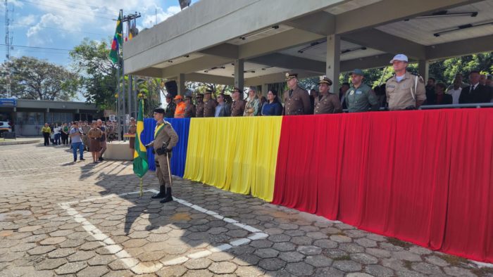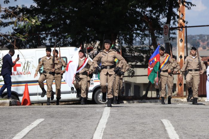 A solenidade de aniversário foi finalizada com o desfile da tropa formada, que foi pela primeira vez comandado por uma mulher, a Capitão Maressa de Assis Silva Martins.