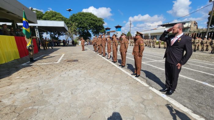 A solenidade de aniversário dos 248 anos da Polícia Militar foi marcada por homenagens no Vale do Aço, o comando da 12ª Região de Polícia Militar reuniu autoridades militares e civis no pátio do 14º BPM, na manhã dessa segunda-feira, 19, para a entrega de honrarias, como forma de reconhecer o trabalho desenvolvido pela tropa e por instituições e personalidades civis, que sempre contribuem na manutenção da segurança pública.