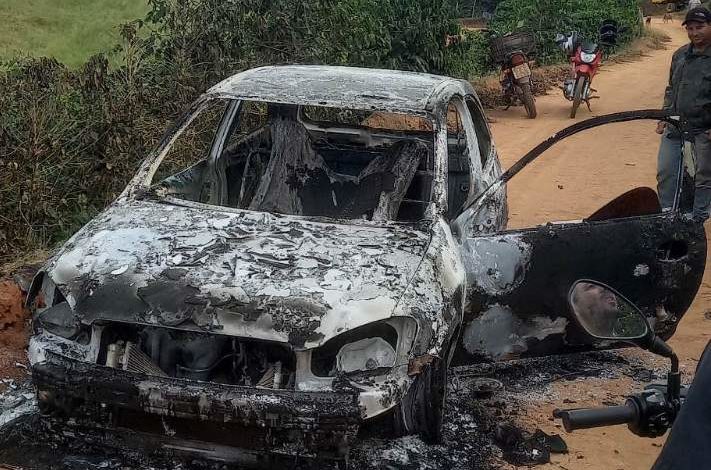 Um homem foi encontrado morto caído numa vala e um veículo totalmente incendiado na região do Córrego Água Limpa, zona rural de Chalé.