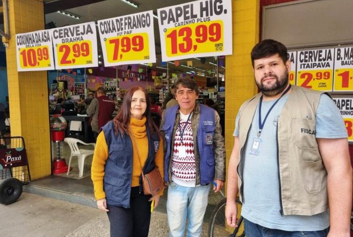 A fiscalização, que ainda está acontecendo, visitou todos os grandes supermercados e uma série de mercearias, inclusive algumas provenientes de denúncias realizadas por consumidores.