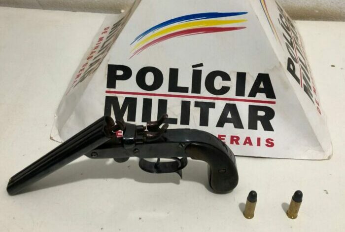 Ele foi abordado e durante a busca pessoal foi localizada na cintura do autor 01 arma de fogo irregular, tipo garrucha, calibre 32 com duas munições intactas.