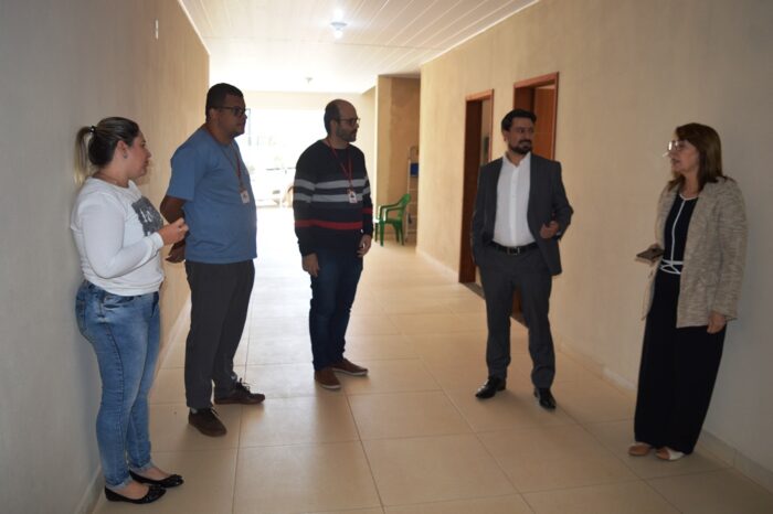 A secretária do Trabalho e Desenvolvimento Social, Eleni de Jesus, juntamente com o subprocurador do município, Thiago Assad, e a servidora, Lara Schettine, estiveram na FUMAPH para acompanhar as obras da reforma do centro de acolhimento da entidade e analisar a possibilidade de ampliar o escopo da parceria já existente, para atender deficientes necessitados, através do programa “Residência Inclusiva”.