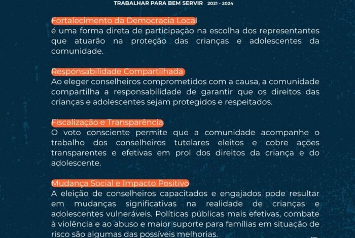 As eleições do Conselho Tutelar são um momento crucial para a sociedade exercer seu papel de cidadania e garantir a proteção e promoção dos direitos da criança e do adolescente.