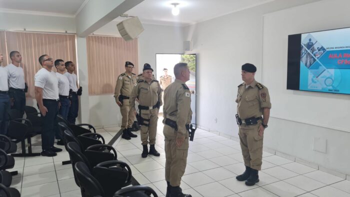 Na tarde de sexta-feira, 15/12, aconteceu no auditório do 11º Batalhão de Polícia Militar, a aula inaugural do Curso de Formação de Soldados/CFSd – 2023, que foi ministrada pelo Comandante da 12ª Região, Coronel Juliano Fábio Lemos Dias aos 53 discentes do CFSd, que ingressaram na Polícia Militar de Minas Gerais no último dia 13/12, e que realizarão o curso na tradicional 195ª Companhia de Ensino e Treinamento em Manhuaçu.