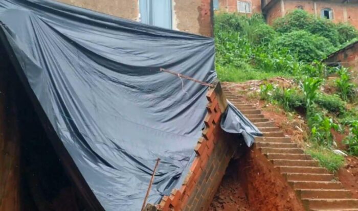 O fato foi registrado na Rua São Mateus. Segundo o Corpo de Bombeiros o murro de arrimo cedeu e para proteger a residência acima provisoriamente foi colocada uma lona plástica, para evitar que a chuva atinja diretamente o terreno.