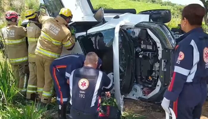 “Chegamos ao local, três pessoas ilesas e uma pessoa com ferimento. Alega que perdeu o controle, mas não sabe precisar qual o motivo. A gente entende também que é uma situação de choque. Ela é esposa da pessoa que está ferida, então a gente não quis questionar mais, mas a alegação dela é que ela não lembra o que aconteceu”, detalhou Victor Pereira, inspetor da Polícia Rodoviária Federal (PRF).