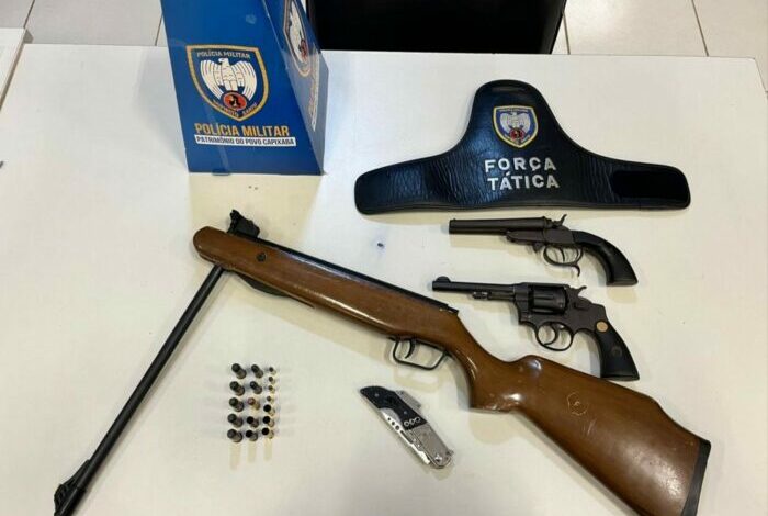 Ainda durante a revista no veículo, foi encontrada uma garrucha cal. 44 dois tiros, com duas munições .38 CBC intactas e no bolso de uma jaqueta, foram encontradas cinco munições cal 44 marca MRP intactas. O homem ainda confessou que em sua casa havia mais uma arma de fogo, os policiais foram até o local e apreenderam uma espingarda cal .22 cabo de madeira e quatro munições cal .22 marca CBC.
