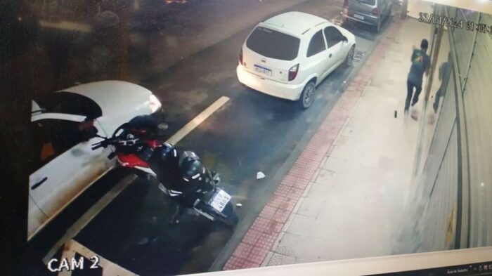 Imagens de câmeras de segurança registraram que a vítima estava na calçada, quando um veículo Fiat Strada branco se aproximou e o passageiro do banco carona efetuou cerca de cinco disparos de arma de fogo e fugiram.