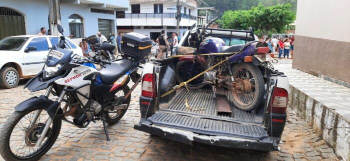 Nesta terça-feira, 19, durante policiamento no distrito de Santa Quitéria, a equipe GEPMOR visualizou uma motocicleta estacionada na rua aparentando estar abandonada no local.