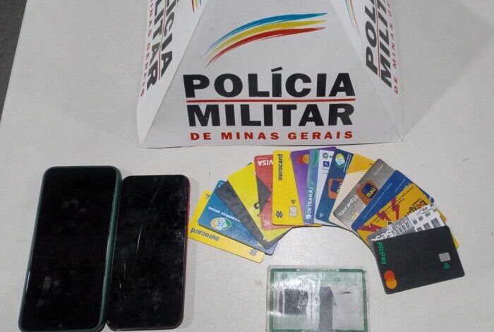 Durante a abordagem, foram apreendidos diversos cartões bancários, um documento falso, celulares e o veículo utilizado na tentativa de golpe.