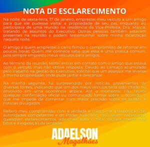 Em nota, o político afirmou que emprestou o veículo a um amigo e que, no momento do crime, participava de uma reunião. Veja abaixo a nota completa.