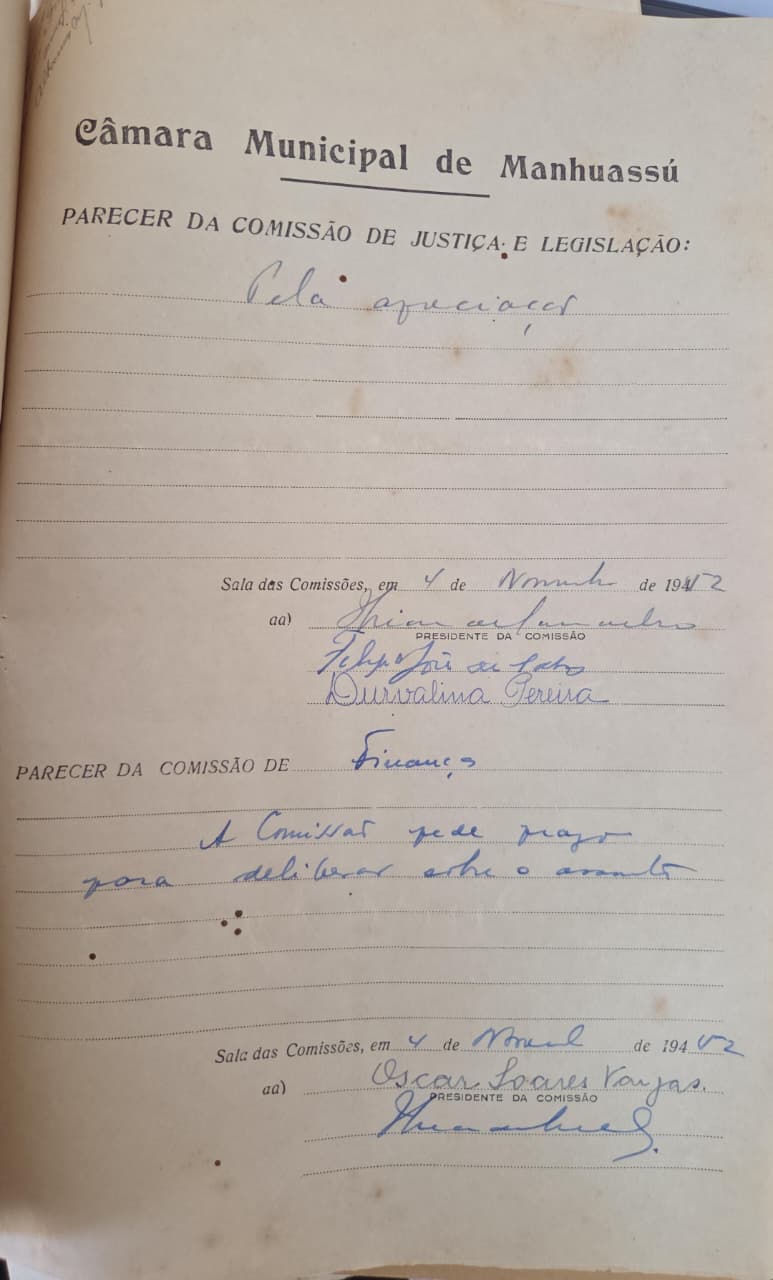 De acordo com os documentos encontrados, Durvalina Pereira ocupou função de destaque na estrutura da Casa, sendo vereadora titular da Comissão de Justiça e Legislação, à época presidida pelo vereador Oscar Soares Vargas. Sua atuação, registrada nos anais da Câmara, representa um importante capítulo da história política de Manhuaçu, ampliando o reconhecimento da presença feminina no espaço público.