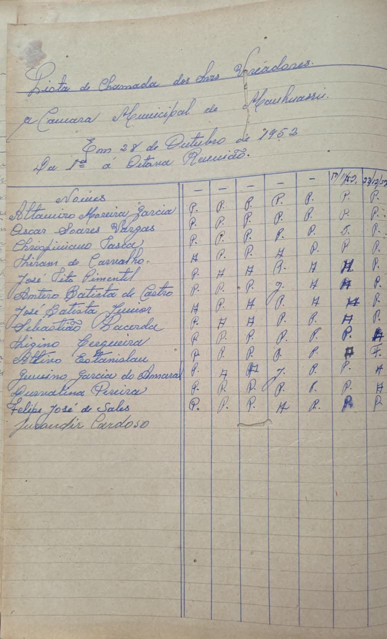 A Câmara Municipal de Manhuaçu acaba de registrar um achado histórico em seus arquivos: a identificação da participação de mais uma mulher no Legislativo local durante a década de 1950. Trata-se da Sra. Durvalina Pereira, que exerceu mandato parlamentar em 1952, marcando presença em um período em que a participação feminina na política era ainda mais rara e desafiadora.