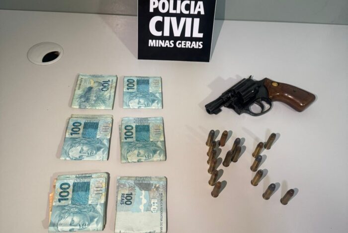 Durante a diligência, devidamente autorizada pelo Juízo, os policiais se dirigiram à uma das residências, oportunidade em que, durante domiciliar, localizaram um revólver calibre .38, munições, e a quantia de seis mil reais.
