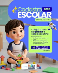 A orientação é que os pais procurem a creche mais próxima de sua residência e acompanhem as datas divulgadas”, orientou Maria Guiomar. A Secretaria reforça a importância de realizar o cadastro dentro do prazo, para que todas as crianças sejam incluídas no planejamento escolar do próximo ano letivo e o processo de matrícula ocorra de forma tranquila e eficiente.