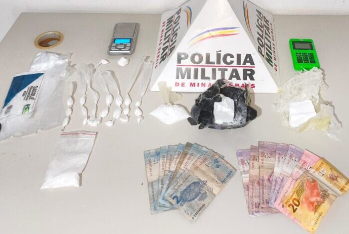 Durante as buscas na residência, foram encontradas 02 porções e uma sacola contendo cocaína, quantidade aproximada para 200 papelotes, além de 15 papelotes da mesma droga já prontos para venda. Também foram localizados balança de precisão, materiais para embalar entorpecentes, máquina de cartão e uma caderneta com anotações relacionadas ao comércio ilegal.