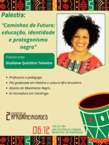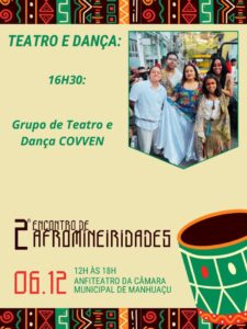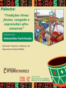 O segundo Encontro de Afromineiridades será realizado no dia 6 de dezembro, de 12h às 18h, no anfiteatro da Câmara Municipal de Manhuaçu. A atividade integra a programação do Mês da Consciência Negra e reúne ações educativas e culturais. A coordenadora do encontro, Negra Jô, explica que o tema será “Afromineridade, Memórias Ancestrais, Caminho de Futuro”.
