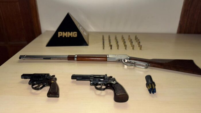 Ao todo, foram apreendidos 01 carabina calibre .38, 01 revólver calibre .357, 01 revólver calibre .38, 30 munições de calibres diversos (.38 e .357), 01 dispositivo de recarga rápida e 07 cartuchos deflagrados/picotados.