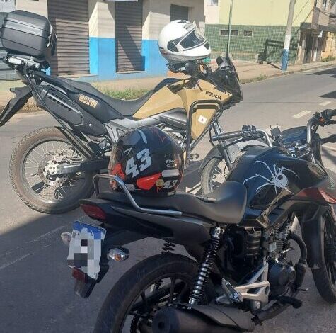 Na fiscalização, os militares verificaram que a motocicleta apresentava diversas irregularidades, entre elas a falta de retrovisor e de iluminação da placa. Além disso, o condutor não era habilitado.