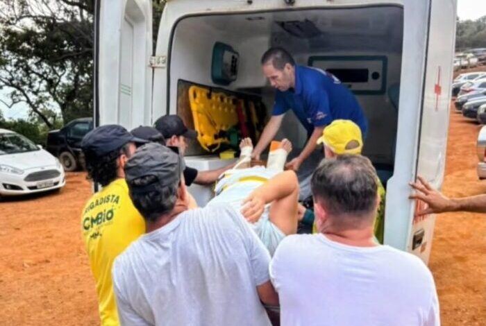 De acordo com informações , a vítima se feriu durante o trajeto e apresentou suspeita de fratura na perna.