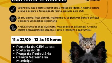 Começa hoje (11) a vacinação contra a raiva em gatos e cachorros em postos fixos na sede do município. Serão…