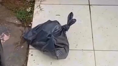 Cachorro é encontrado amarrado dentro de saco de lixo em Espera Feliz