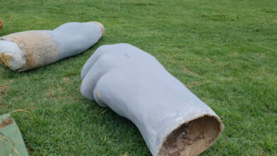 Braços da estátua do cafeicultor recuperados começam a ser instalados
