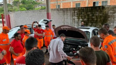 Bombeiros Militares passam por treinamento de sinistros envolvendo veículos elétricos