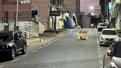 Rede de esgoto estourada abre buraco na rua Luiz Cerqueira, no centro de Manhuaçu