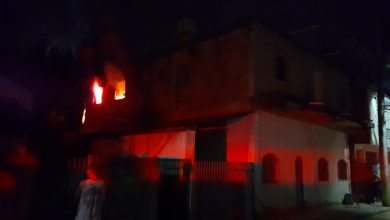 Bombeiros combatem incêndio em residência na madrugada em Manhumirim