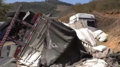 PRF prende sete pessoas por saque de carga de café após tombamento de carreta na BR-116 em Caratinga